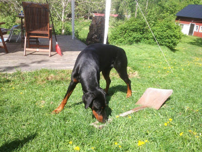 Idag var det tänkt att jag skulle träna räddning igen på Stora Vika i Nynäshamn. Jag skulle samåka med en tjej, men vid halv sex imorse fick jag ett sms om att hon hade sovit dåligt och var så trött att hon inte skulle åka ner. Och det är liksom inte läge att försäka ragga upp någon annan att samåka med klockan halv sex en söndag morgon, så då ställde jag också in träningen. Nog för att det hade varit kul och nyttigt för Hetzer att åka dit, men det skulle kosta väldigt mycket i soppapengar att kuska till Nynäs fram och tillbaka - nä, då får Hetzer träna på hemmaplan!