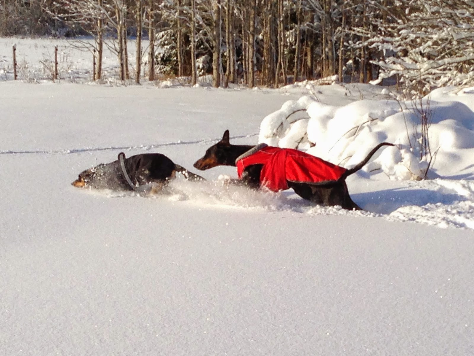 Hetzer och Heinz for runt i snön (Cassi fick för säkerhets skull vara i koppel).