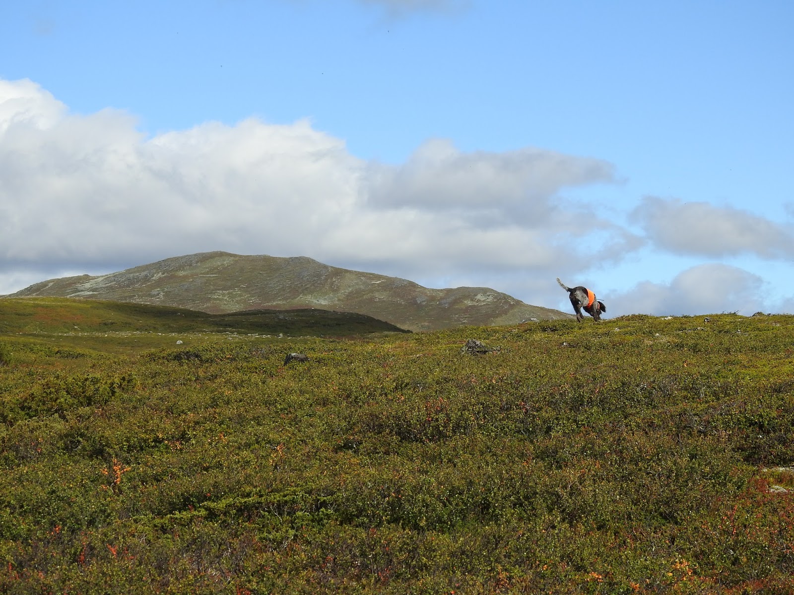 På lördagen var det, som sagt, jakthundsprov och Bisons bror Sigge var där. Betydligt mindre päls på honom..... Vad bekvämt! :-)